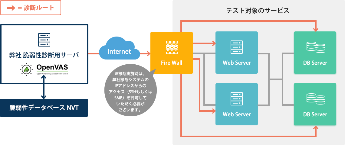 弊社IPアドレス、公開鍵など、診断に伴い必要となる設定を、貴社にて実施いただきます。